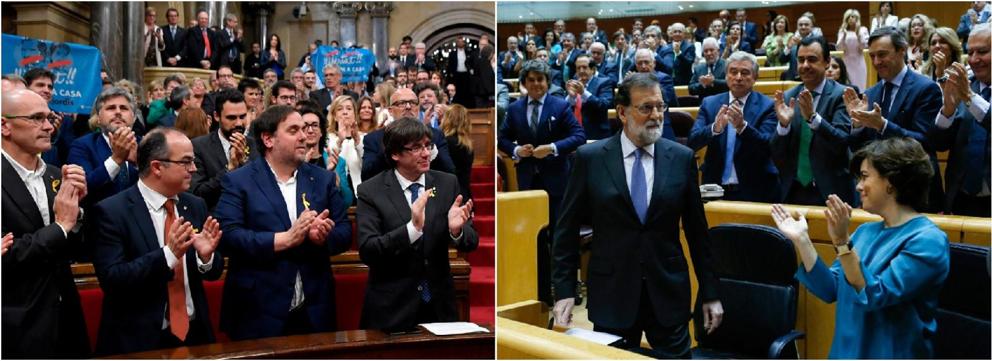 Тем временем премьер-министр Испании Мариано Рахой пообещал "восстановить законность в Каталонии". Через час после провозглашения независимости Сенат Испании таки ввел в действие статью 115.