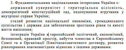 Примечательно и то, что по сравнению с ныне действующим законом "Об основах национальной безопасности Украины" 2003 года, существенно сузилось само понятие защиты национальных интересов.