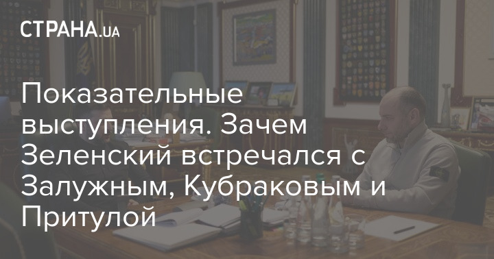 Президент Владимир Зеленский провел в первой половине января несколько довольно неожиданных встреч. Речь идет о появлении в президентском кабинете на Банковой экс-министра иностранных дел Дмитрия Кулебы, шоумена и волонтера Сергея Притулы, бывшего главы одесской организации "Правый сектор" Сергея Стерненко, экс-главкома ВСУ Валерия Залужного и бывшего вице-премьера по восстановлению Украины - министра развития общин, территорий и инфраструктуры Александра Кубракова.