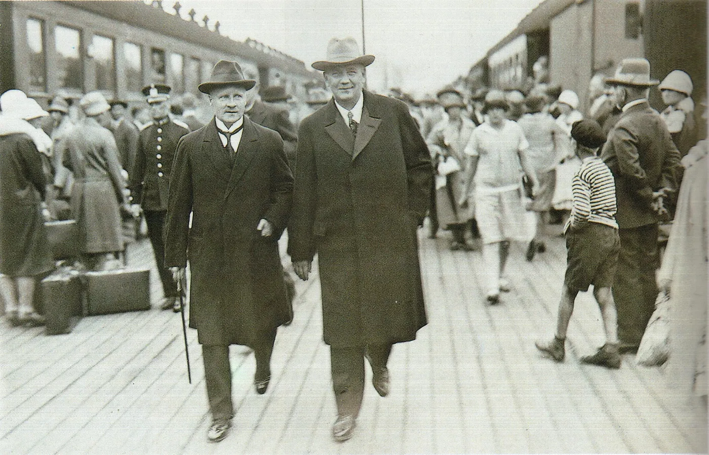 Паасикиви (в очках) возвращается из первой поездки в Москву. 16 октября 1939