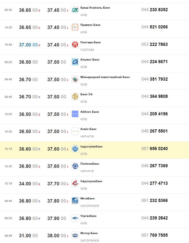 - 36,55-37,15грн/$ - Укрэксимбанк.