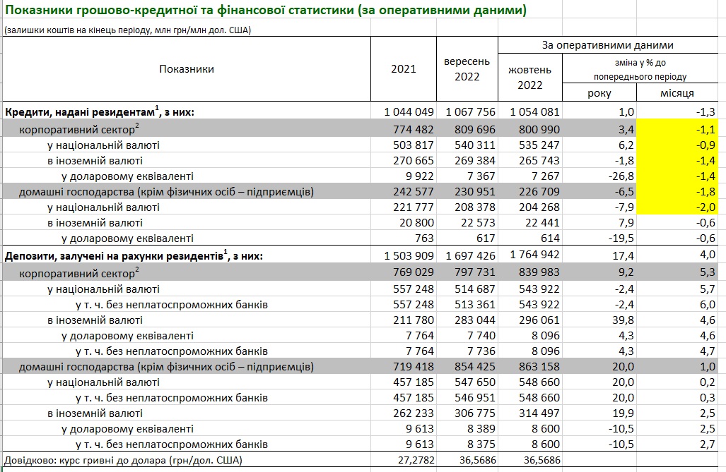 В Украине фактически заморожено кредитование экономики. Банковская система в октябре 2022 года сократила общий объем кредитного портфеля на 1,3% — до 1,05 трлн грн.