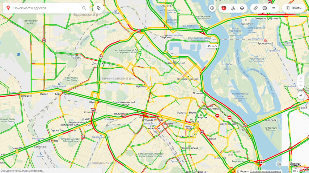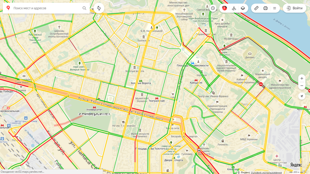 Центр Киева стоит в тянучках, который местами переходят в серьезные заторы - как, например, на бульваре Леси Украинки, где ситуацию осложнило ДТП.