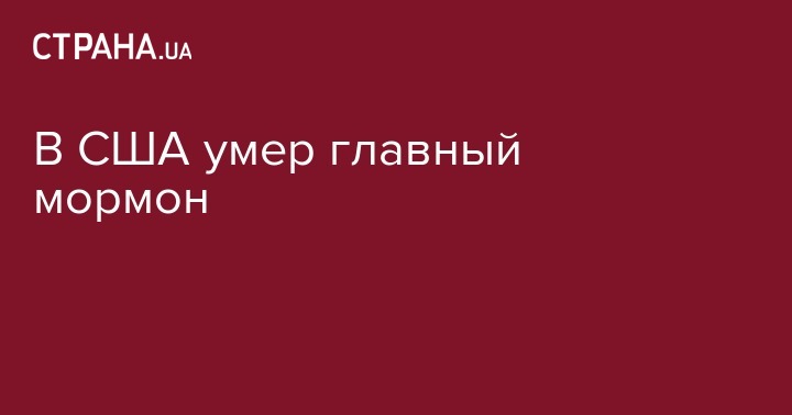 В США умер глава самой крупной религиозной организации мормонов Церкви Иисуса Христа Святых последних дней Томас Спенсер Монсон. Об этом сообщается в Twitter организации.