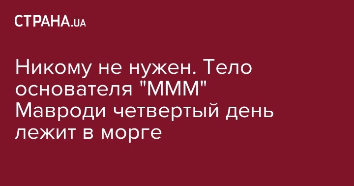 Уже четвертый день после смерти основателя финансовой пирамиды "МММ" Сергея Мавроди за его телом так никто и не приходит. Известного махинатора могут похоронить за счет государства, передает Telegram-канал Mash.