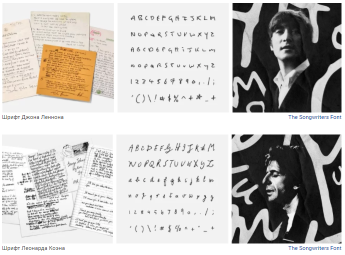 Графический дизайнер Николя Дамьен разработал шрифты на основе почерков Курта Кобейна, Дэвида Боуи, Джона Леннона, Леонарда Коэна и Сержа Генсбурга.