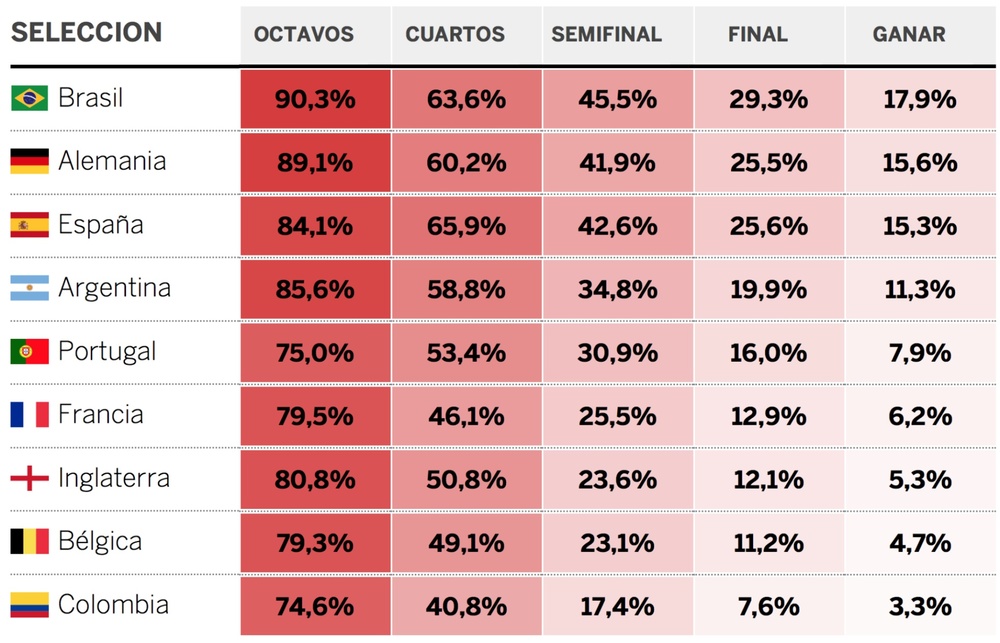 Шансы национальных сборных оценивало издание El Pais, используя свою аналитическую разработку.