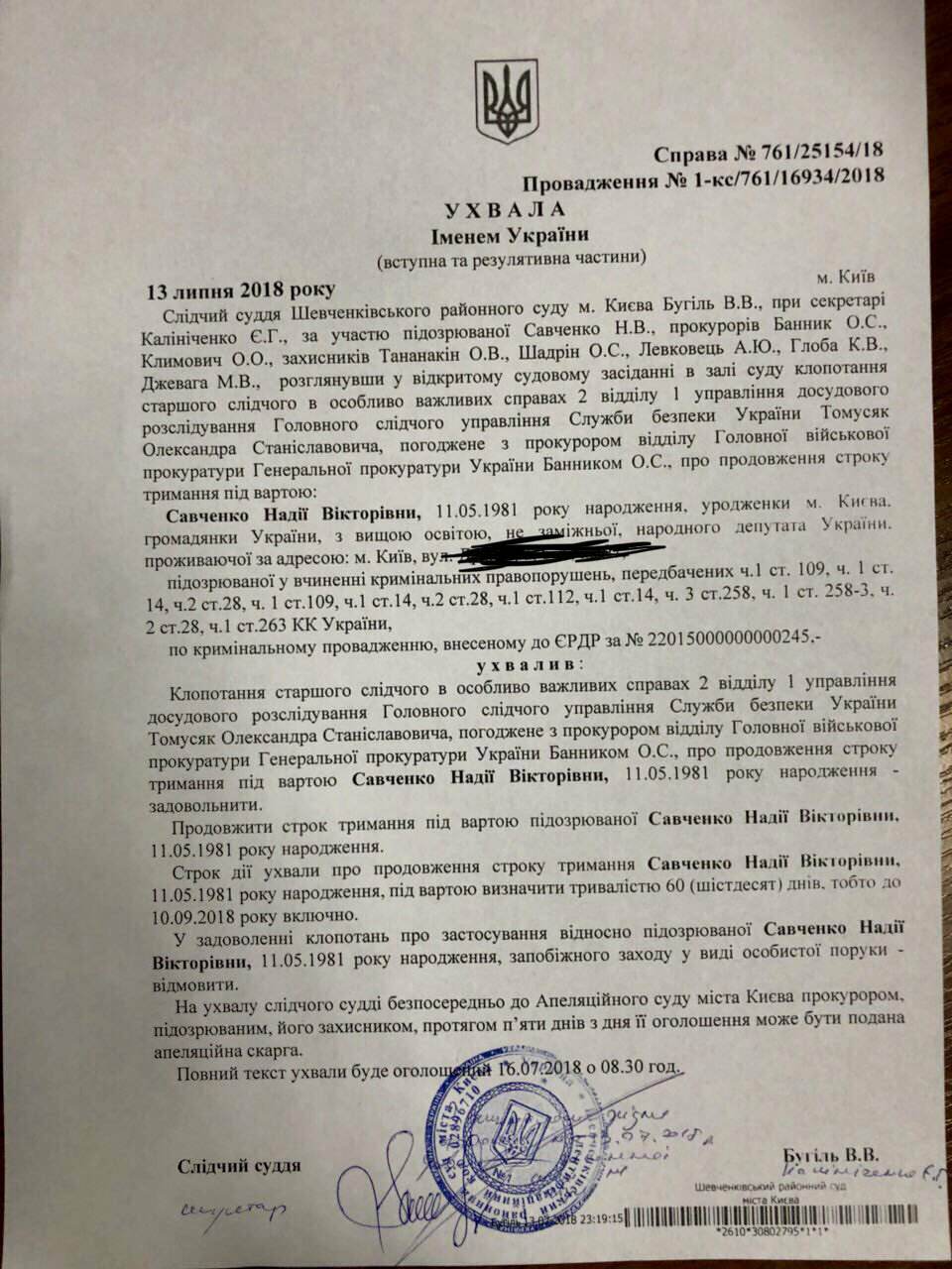 "Я такого беспредела не видела даже в российском суде". Суд продлил арест Надежды Савченко на два месяца. Документ