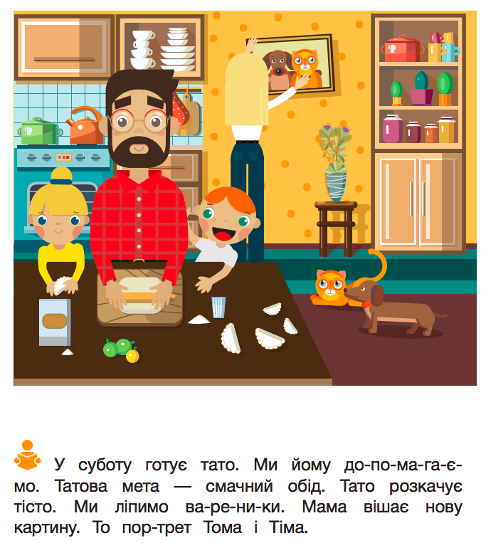 В одном из стихотворений у мамы есть на теле татуировка. В маленьком рассказе папа лепит с детьми вареники, а мама - вешает картину на стену.
