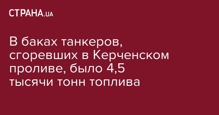 В баках танкеров, сгоревших в Керченском проливе, было 4,5 тысячи тонн топлива