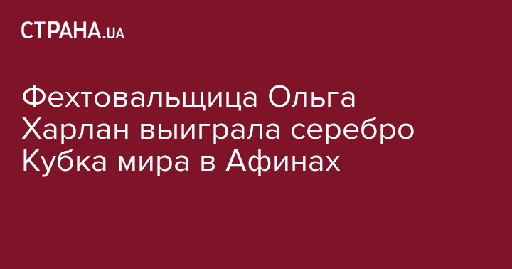 Украинская саблистка Ольга Харлан выиграла серебряные медали Кубка мира в Афинах (Греция). Об этом сообщает XSport.