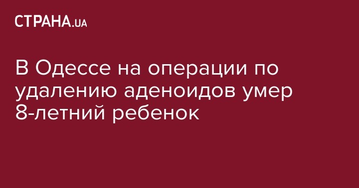 В Одессе вчера, 28 марта, произошла медицинская трагедия. Здесь, в городской больнице, во время операции по удалению аденоидов скончался 8-летний ребенок. Об этом сообщает пресс-служба областной полиции.