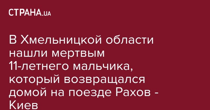 Рано утром 25 июля в селе Волосское Хмельницкой области на железнодорожных путях нашли мертвого 11-летнего мальчика. Об этом сообщает Отдел коммуникации ГУ НП Хмельницкой области