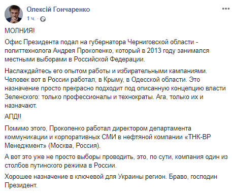 Скриншот, фото: Facebook/ Олексій Гончаренко