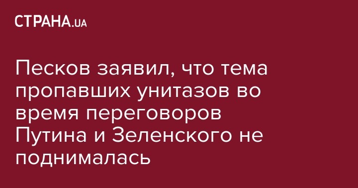 Песков заявил, что тема пропавших унитазов во время переговоров Путина и Зеленского не поднималась