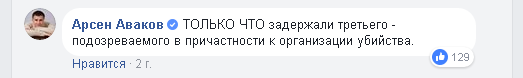 18 июня 2015 года глава МВД Арсен Аваков сообщил о раскрытии убийства и о задеражнии трех человек (в основном посте он указал двух и в комментариях добавил еще одного).