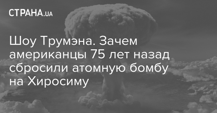 75 лет назад, 6 августа 1945 года, американцы по приказу своего президента Гарри Трумэна сбросили ядерную бомбу "Малыш" на японский город Хиросима. Он стал целью, поскольку в 1945 году там находился второй Генштаб Японии и генштаб Военно-Морских сил.