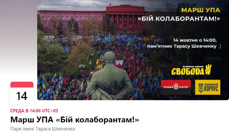 На среду, 14 октября, в Киеве запланирован "Марш УПА 2020".
