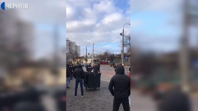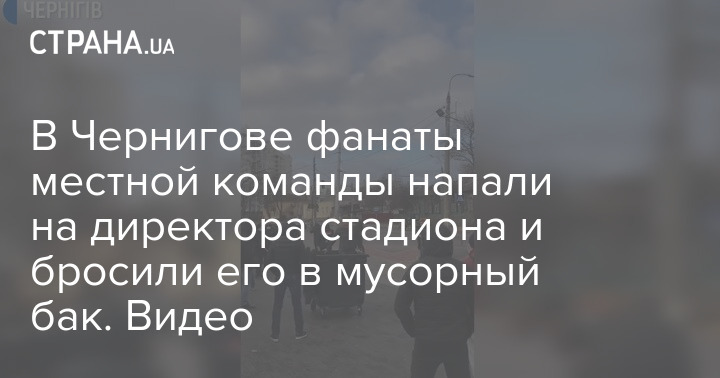 В Чернигове руководителя стадионом бросили в мусорный бак. Скриншот из видео