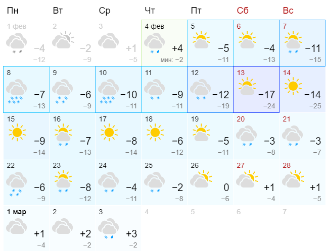 По данным Gismeteo, 14 февраля станет самым холодным днем этого месяца