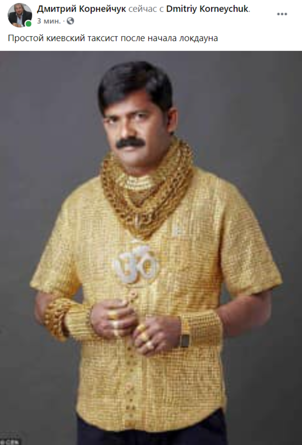 "Простой киевский таксист после начала локдауна", - подписал фото политолог Дмитрий Корнейчук.
