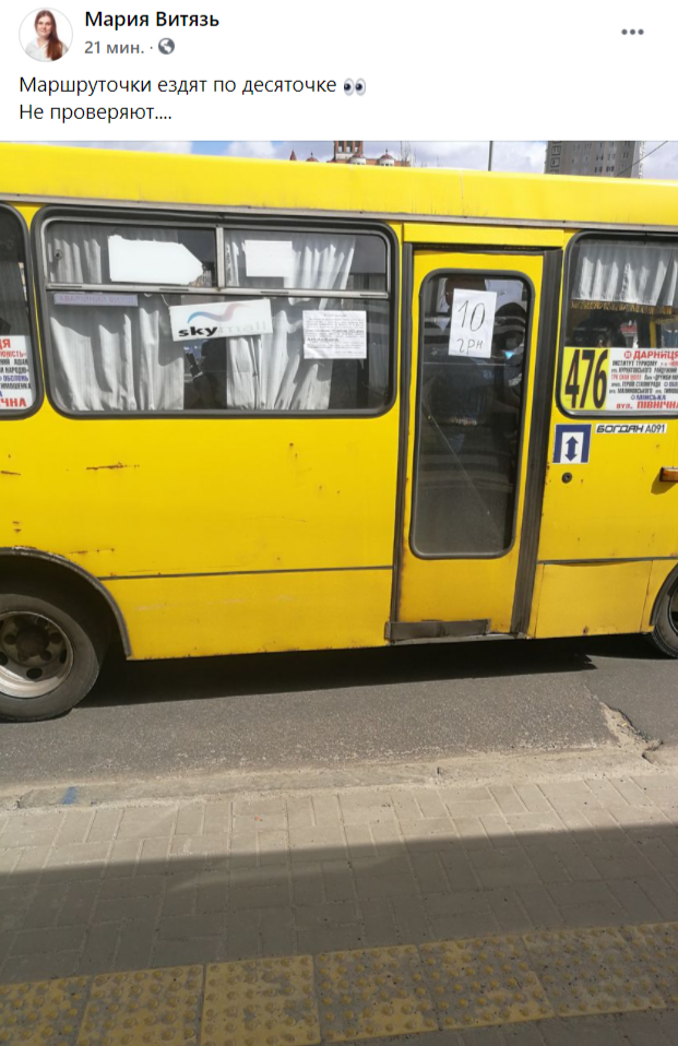 13:25 Киевляне сигнализируют о том, что стоимость проезда в некоторых маршрутках подняли с 8 грн. до 10 грн. Как в маршрутке № 476, где спецпропуска не проверяют.