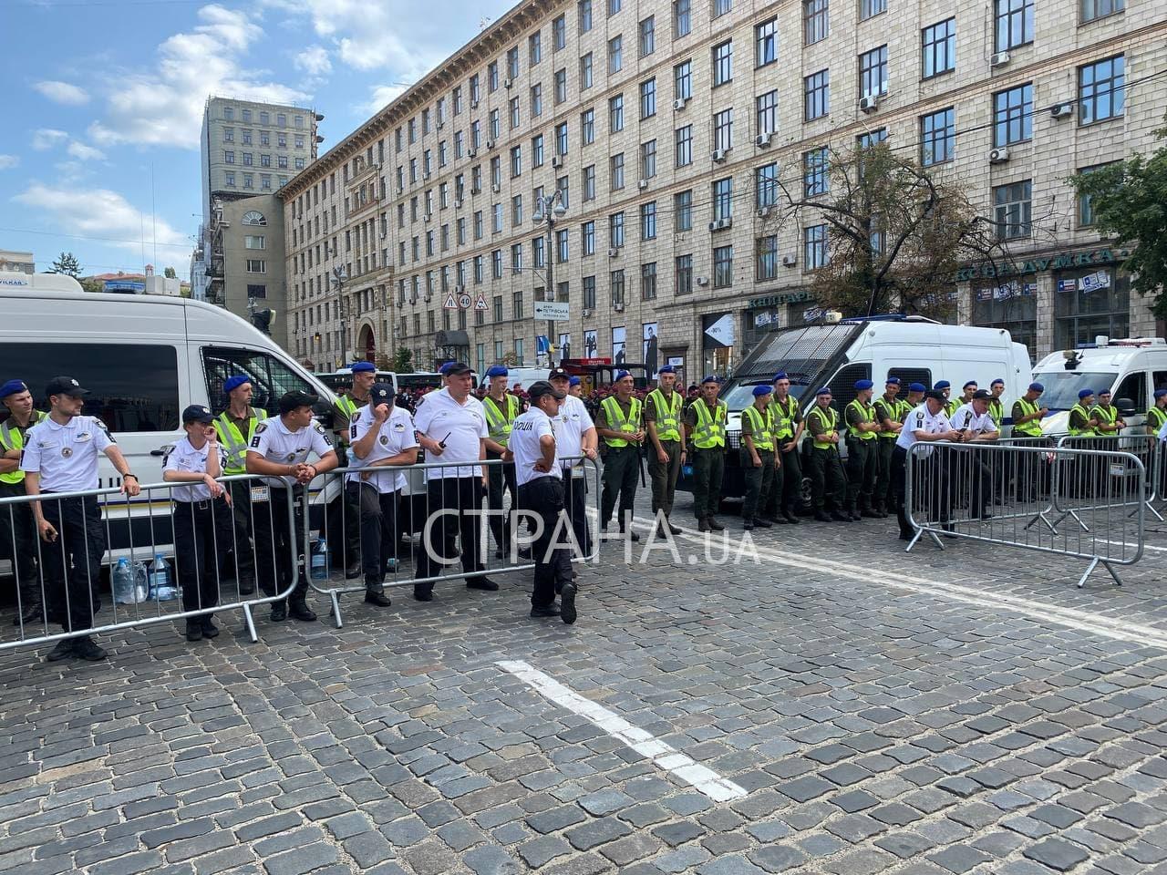 13:04 Марш националистов, который должен был начаться в 13:00, задерживается. Это связано с тем, что им еще не освободили проход на Крещатике.