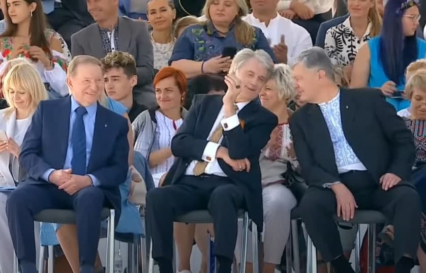 09:52 На трибунах уже все президенты - Кучма, Ющенко, Порошенко. Кравчука пока не видно. Также, по понятным причинам, пока нет Януковича.