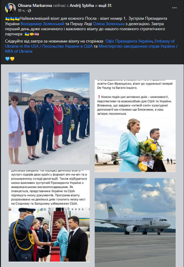 "В Вашингтоне наступило утро и скоро начнут поступать новости по визиту Зеленского. Но для затравки - фото со странице в ФБ посла Украины в США Оксаны Маркаровой, как встречали в аэропорту Зеленского. Весьма "представительная", конечно, группа встречающих", - говорится в сообщении.