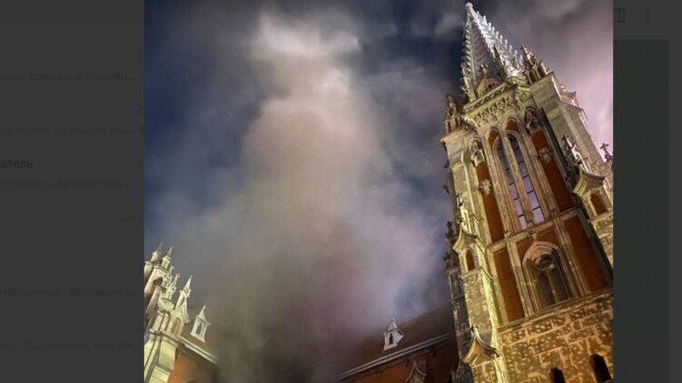 В Киеве загорелся католический костёл на Большой Васильковской. Видео