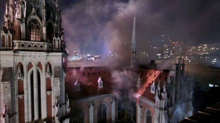 Напомним, вечером в пятницу, 3 сентября, в Киеве начался пожар в католическом костёле святого Николая. Здание находится на ул. Большая Васильковская. Однако, пожарные довольно оперативно локализовали и потушили пожар в католическом костеле.