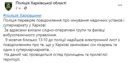 Харьковская полиция проверяет информацию о минировании "ковидных" больниц и супермаркета