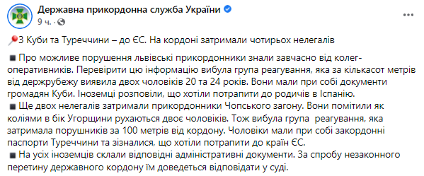 Об этом Госпогранслужба сообщила на странице в Фейсбук.