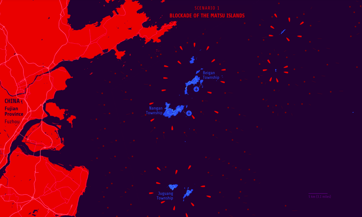 "Опросы общественного мнения на Тайване показывают неуклонно растущую поддержку формальной независимости среди молодого поколения острова. Соединенные Штаты и их региональные союзники продолжают укреплять военные и политические связи с Тайбэем. Си и его высшее военное командование решают, что Китай введет блокаду тайваньских островов Мацзу, чтобы усилить давление на Тайбэй (столица Тайваня - Ред.) с целью начать переговоры об объединении.