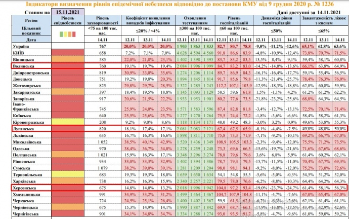 Согласно данным Минздрава, в Луганской, Волынской и Херсонской областях пока превышен только один из трех показателей.