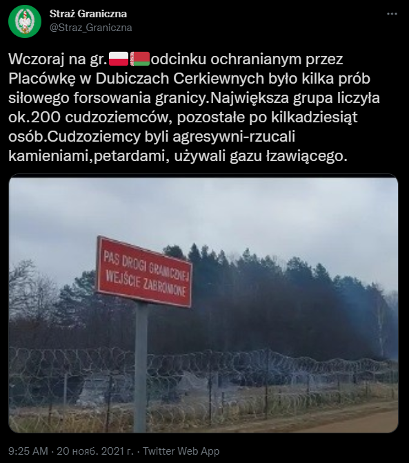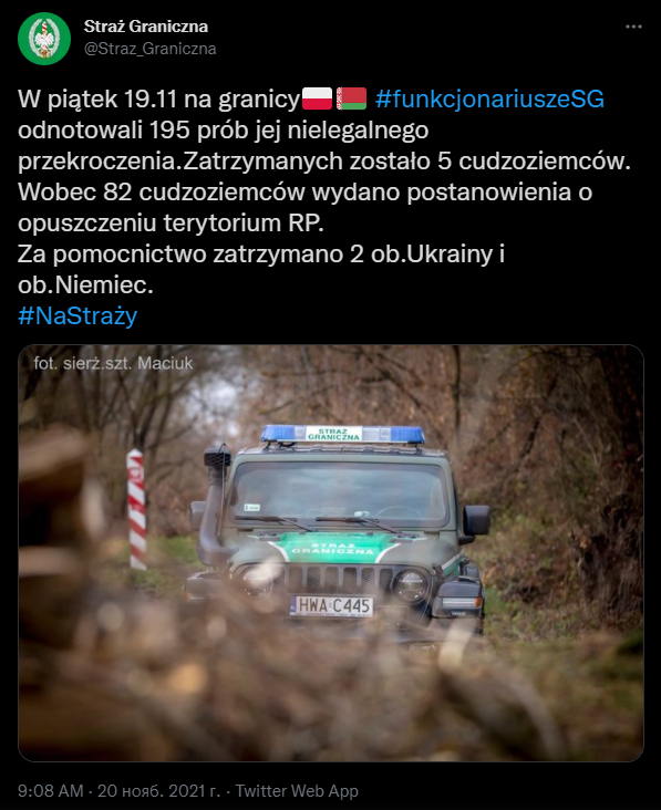 — Straż Graniczna (@Straz_Graniczna) November 19, 2021