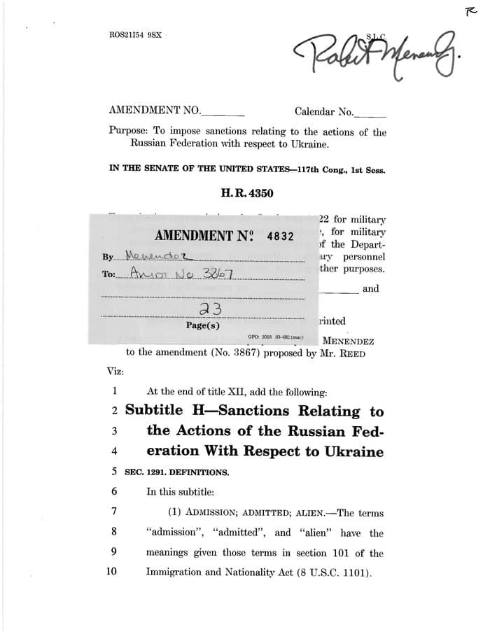 В частности, поправка требует от американского президента ввести санкции и запреты на въезд против ведущих российских военных и сотрудников разведки, а также предлагает увеличить военную помощь Украине.