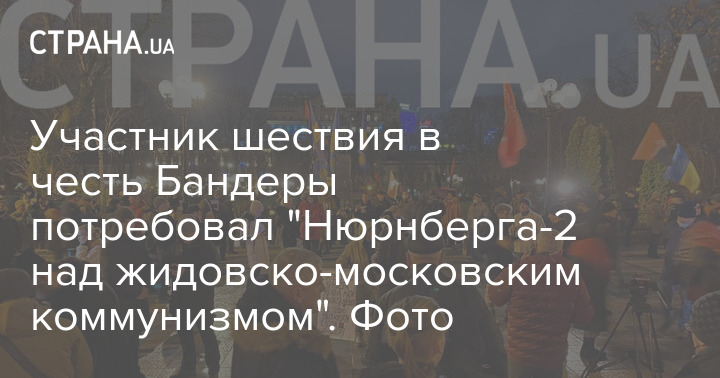 В Киеве проходит факельное шествие в честь Степана Бандеры, которому 1 января исполняется 113 лет. Один из участников марша явился на мероприятие с антисемитским плакатом.