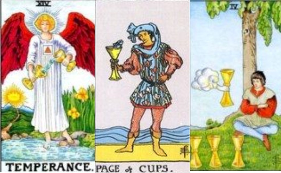 Ваши карты - старший аркан Умеренность, младшие арканы паж кубков и четверка кубков (роскошь)