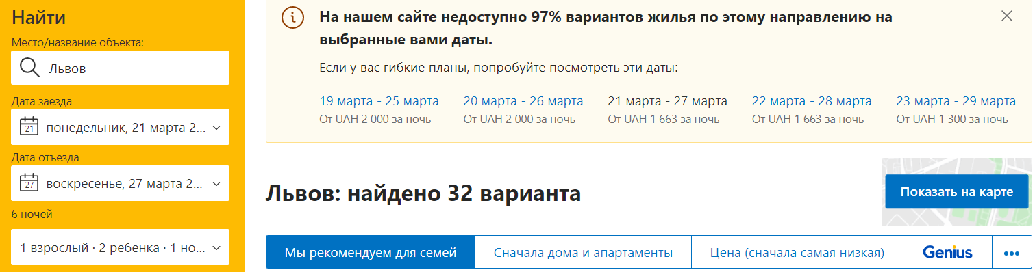 Примерно половина всех предложений, которые есть на "Букинге", обойдутся в 3-4 тысячи гривен в сутки.