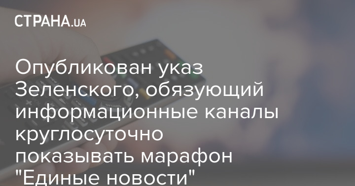 Опубликован указ президента Владимира Зеленского "О единой информационной политике в условиях военного положения", в соответствии с которым все информационные каналы должны будут круглосуточно транслировать марафон "Єдині новини #UАразом".