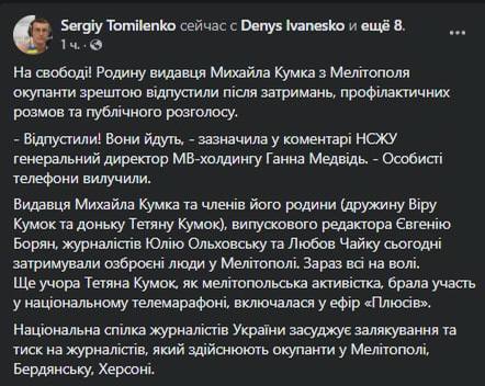 21.00 В России подтвердили факт обмена мэра Мелитополя Федорова на девять российских военных (это произошло еще 16 марта.