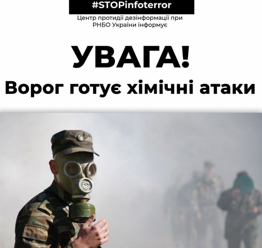 Практически одновременно пошли заявления из Киева. Центр по борьбе с фейками при СНБО заявил, что противник готовит химатаку и опубликовал советы, как себя вести, если она произойдет (их полный список можно найти в конце материала).
