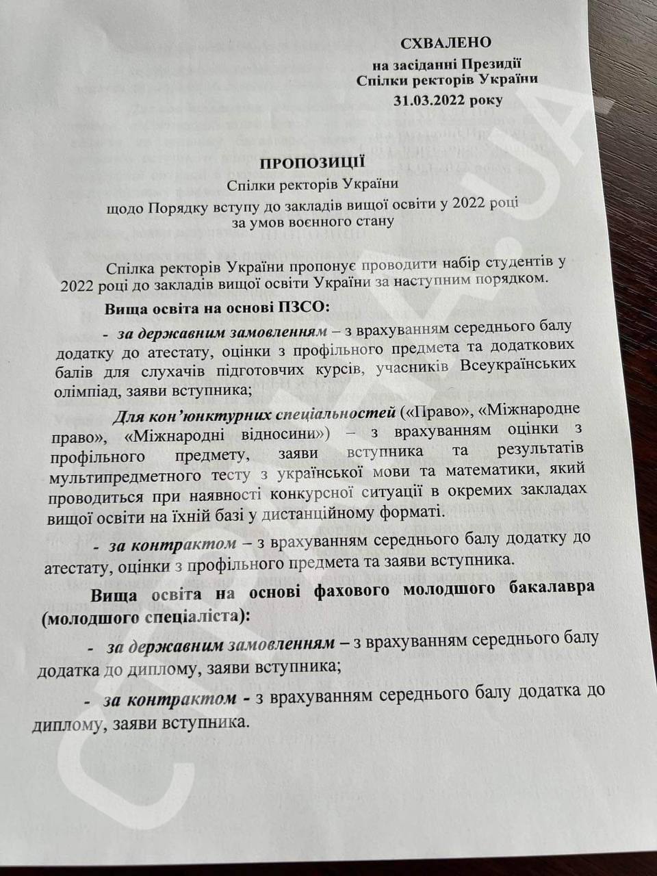 В распоряжении "Страны" оказались предложения союза ректоров Украины по поводу Порядка поступления в ВУЗы в 2022 году в условиях военного положения.