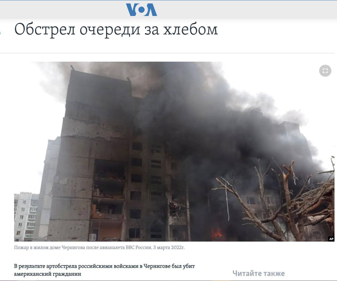 После обстрела российскими снайперами жителей Чернигова, стоявших в очереди за хлебом, погиб гражданин США Джимми Хилл.