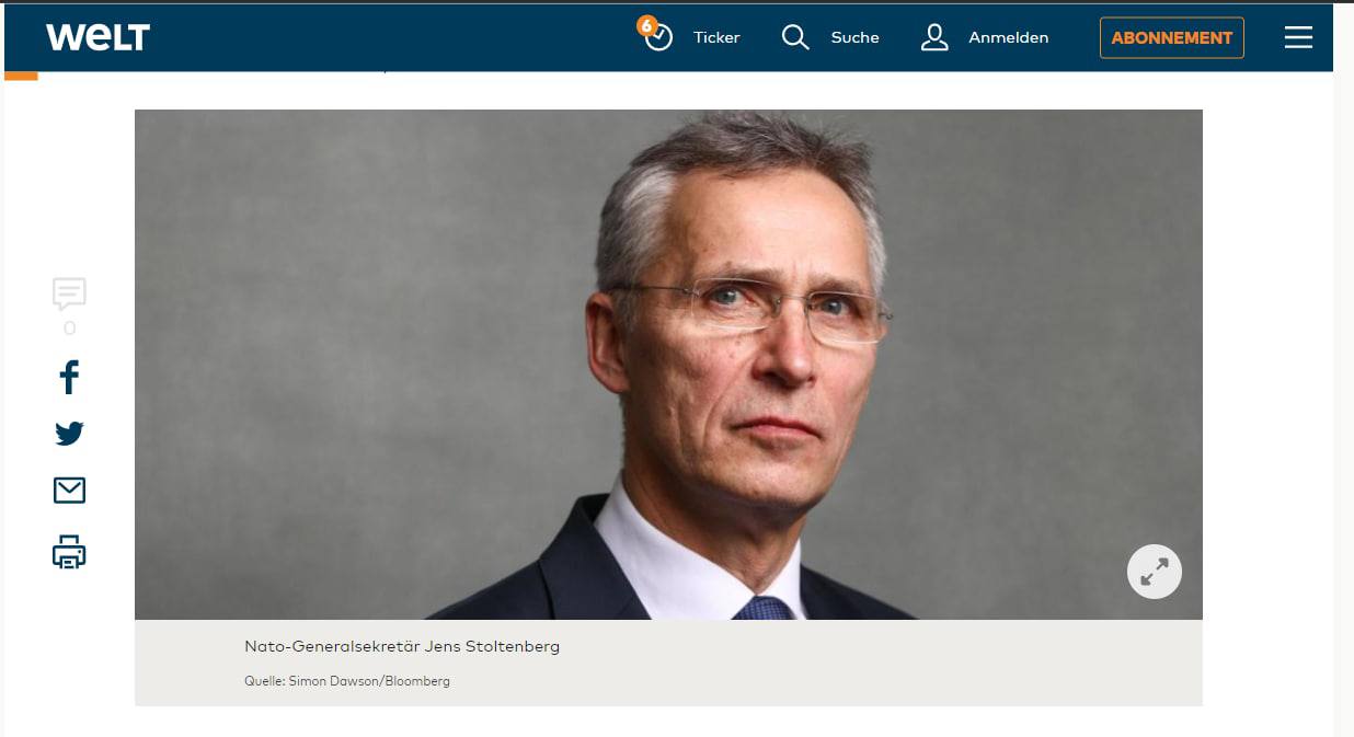 Об этом сказал генеральный секретарь НАТО Йенс Столтенберг в интервью немецкому изданию Welt Am Sonntag.