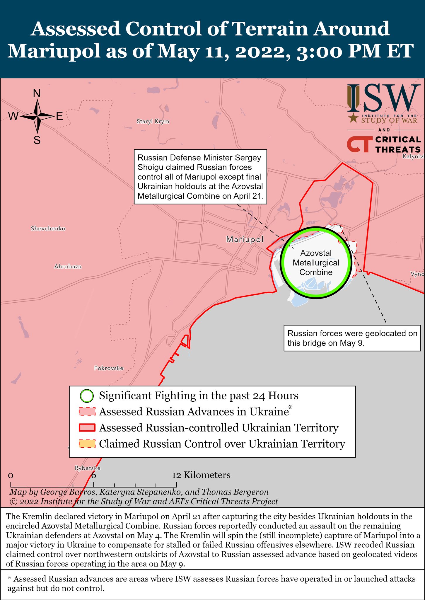 В Донецкой и Луганской области продолжаются бои, идут обстрелы. Самые горячие точки в районе Рубежного, Лимана, Светлодарска, Троицкого. В Мариуполе продолжается штурм "Азовстали".
