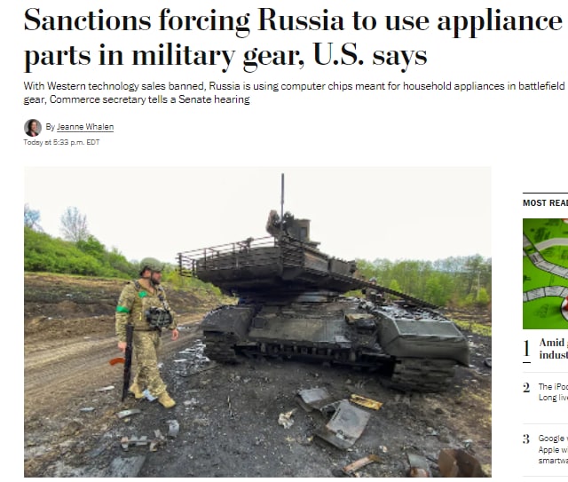 08:01 Россия использует в своей военной технике чипы из импортных посудомоечных машин и холодильников. Об этом на слушаниях в Сенате сообщила министр торговли США Джина Раймондо.