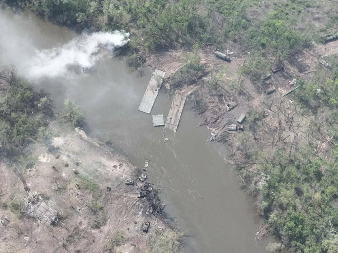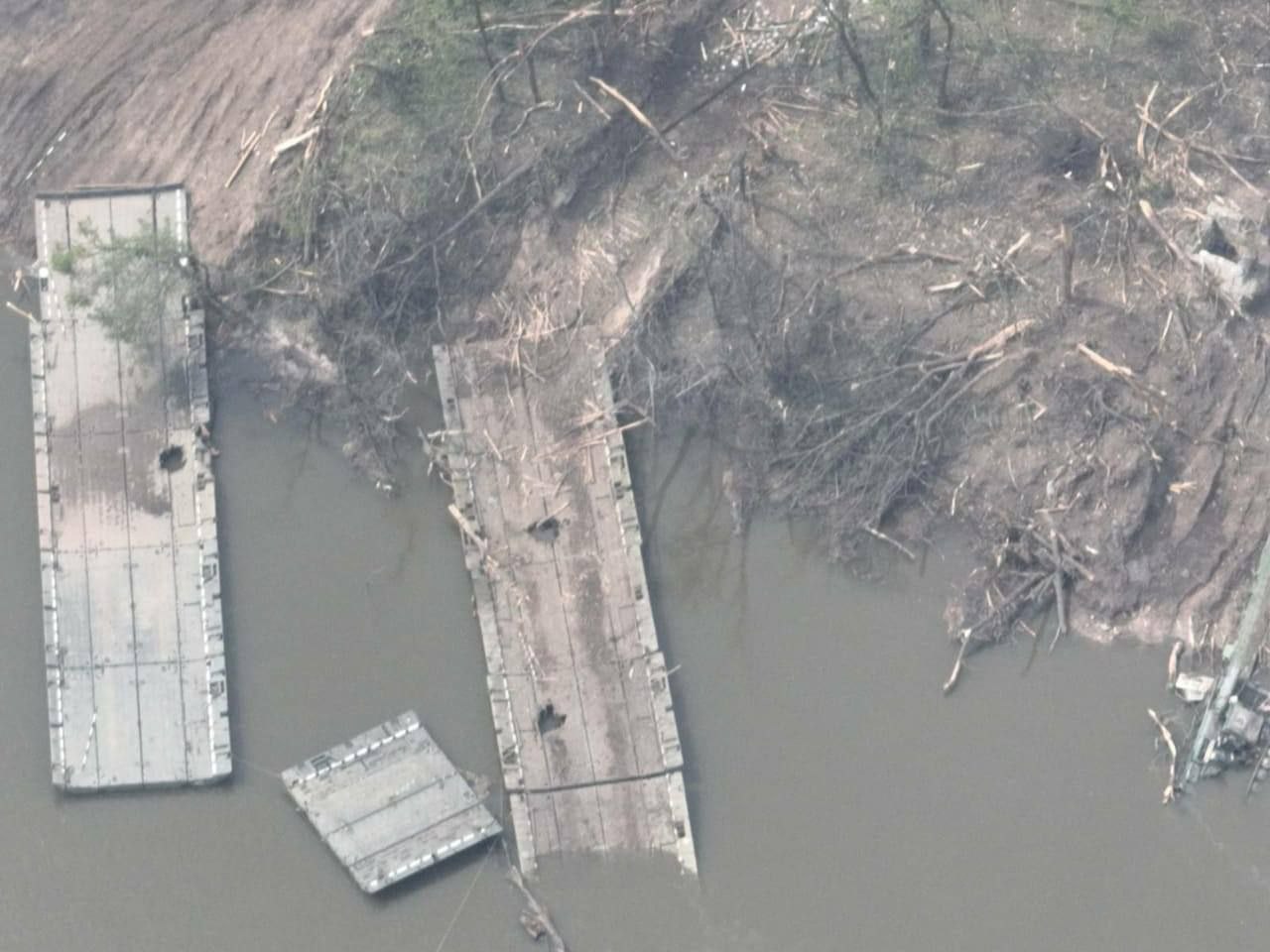 К такому выводу пришли специалисты по изучению данных (OSINT), проанализировав снимки разрушенной понтонной переправы. Допускается, что еще какое-то количество техники затонуло.