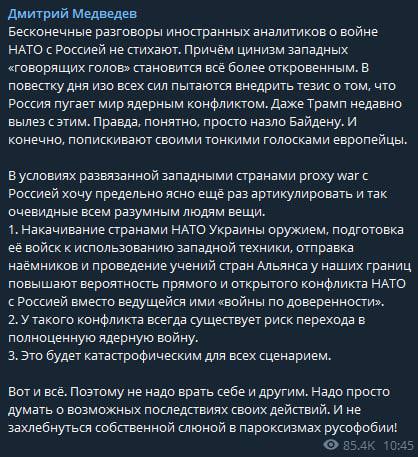 4. "Российское стратегическое поражение очевидно уже всем в мире. Просто у России пока нет смелости это признать. Они трусы. И пытаются скрыть правду за ракетными, авиационными и артиллерийскими ударами. Поэтому наша задача – бороться, пока мы не достигнем своих целей в этой войне".